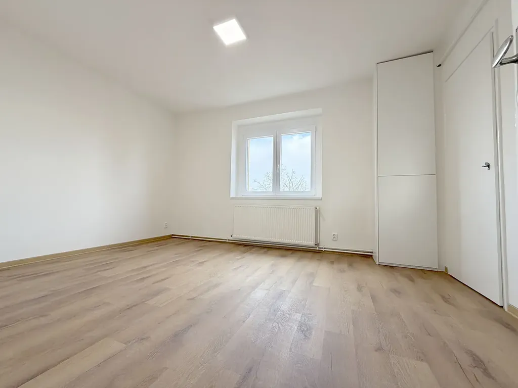 Byt se nachází v 2. patře (3. NP) bez výtahu, je nezařízený a nově po kompletní rekonstrukci s výhledem do zeleně. Ložnice je samostatná místnost se severozápadní orientací.