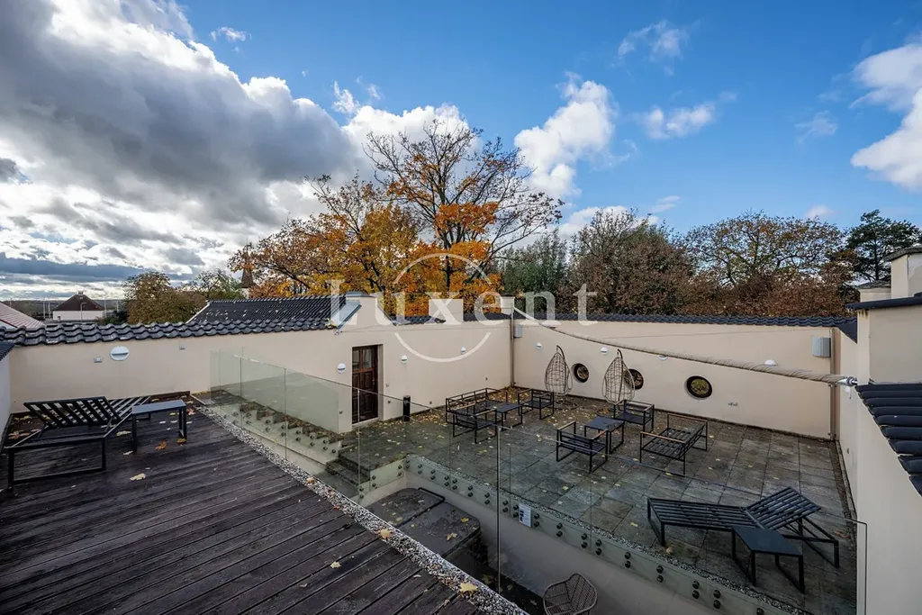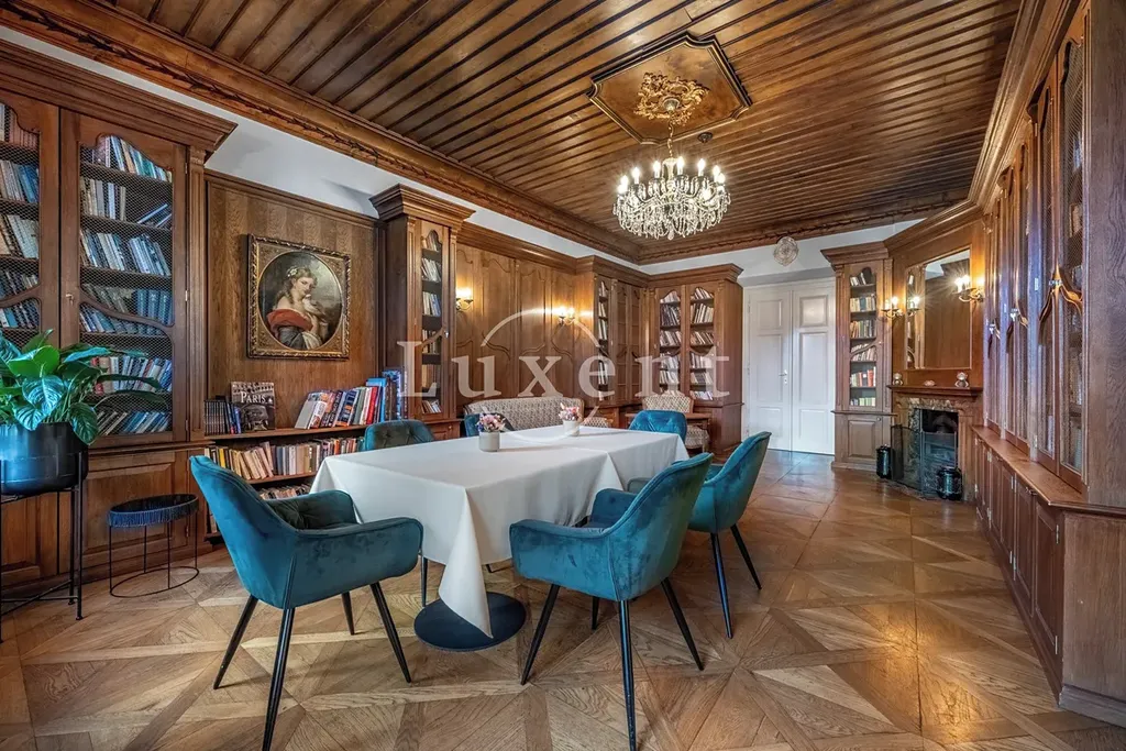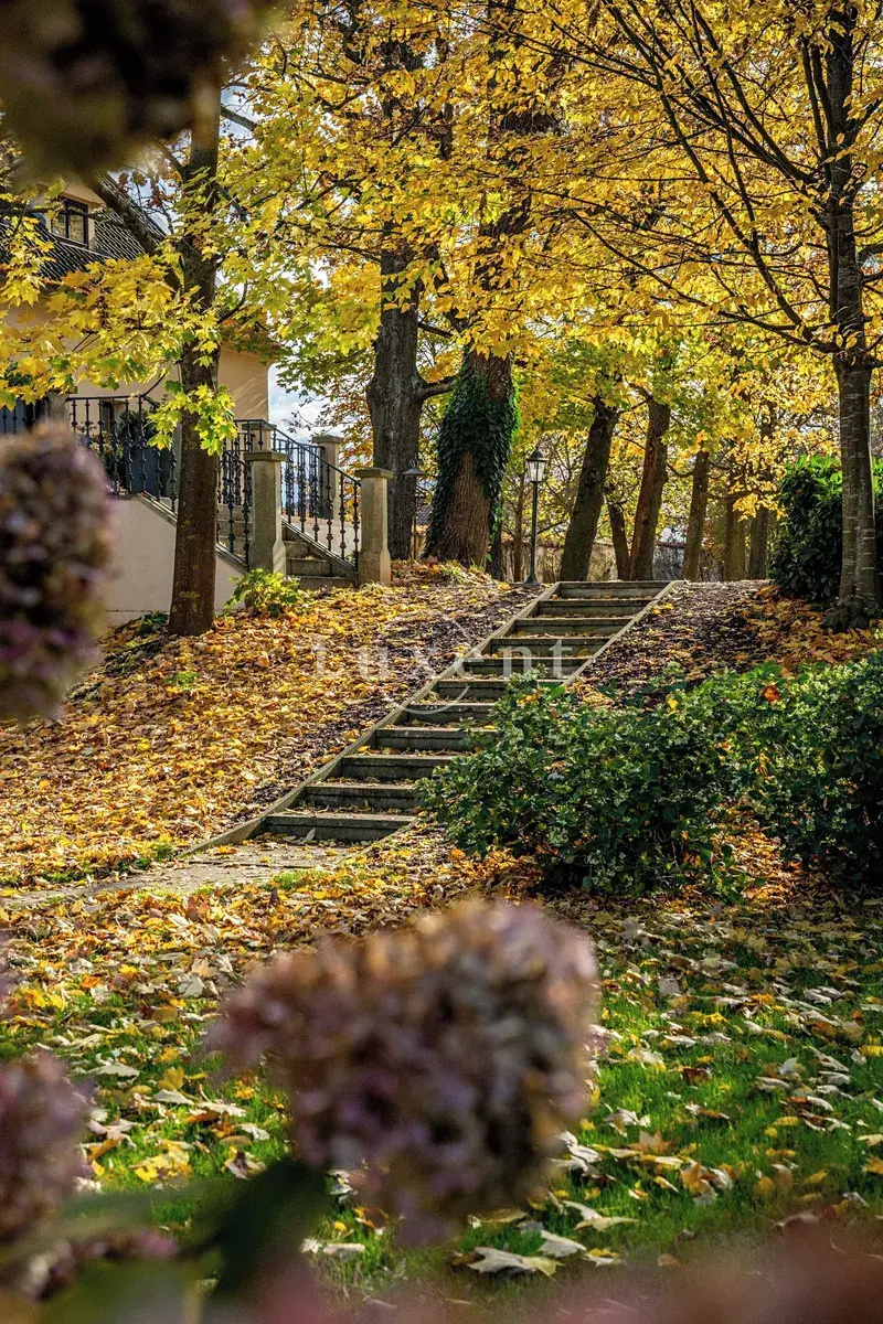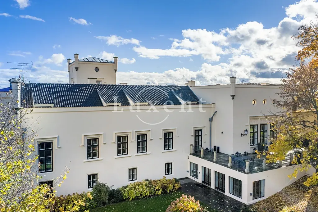 Srdcem této výjimečné rezidence o užitné ploše 1 585 m² je noblesní hlavní sál s krbem, který vytváří hřejivou a zároveň majestátní atmosféru – ideální pro rodinná i společenská setkání. Ze sálu je přímý vstup na terasu plynule navazující na rozlehlou zámeckou zahradu (4 253 m²) s jezírkem (1 536 m²), altánem a fontánou.