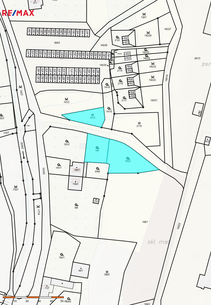 Podle územního plánu pozemky parc.č. 186 o výměře 401 m2 a 189/2 o výměře 730 m2 spadají pod Plochy smíšené obytné: