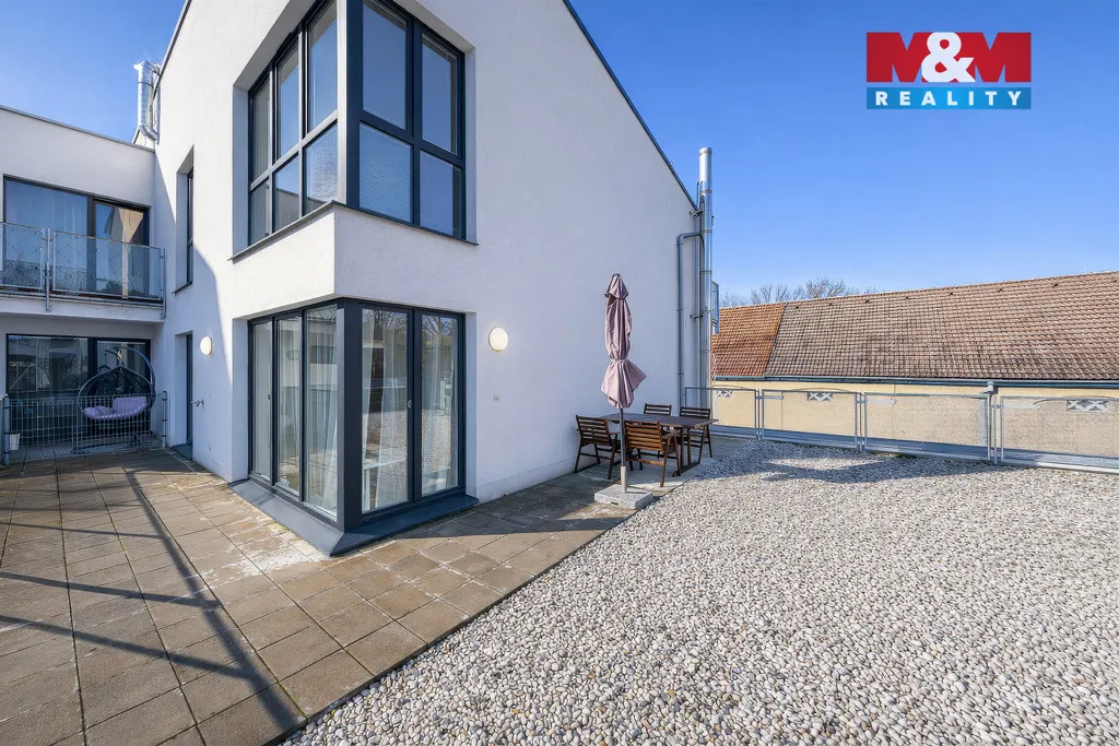 Prodej moderního bytu 3+kk v prestižním projektu Rezidence U Rokytky se třemi dvoupatrovými vila domy z roku 2021, s výjimečnou terasou a garážovým stáním v hodnotě 650.000 Kč již v ceně. Byt o užitné ploše 70 m² se nachází ve 2. NP nízkoenergetické novostavby (třída B) a nabízí ideální propojení komfortu, soukromí a přírody při rychlé dostupnosti centra. Součástí je balkon 5 m² bez přímých pohledů sousedů, velkorysá terasa 64 m² poskytující prostor pro lounge zónu, grilování i rodinné posezení a samostatný sklep. Celková plocha včetně příslušenství činí 142 m² + garážové stání s možností dokoupení druhého. Orientace na východ, jih a západ zajišťuje dostatek světla po celý den. Kvalitní materiály, výborný stav, byt obýván pouze majiteli. Velká společná zahrada s prostorem pro děti i dospělé. Klidná lokalita u parku Smetanka, v blízkosti Rokytky, cyklostezek a zeleně. Kompletní občanská vybavenost, MHD 2 min., Václavské náměstí 16 min. autem. Možnost převzetí hypotéky s úrokem 2,29%.