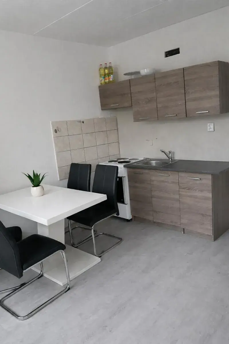 V kuchyni je kuchyňská linka s elektrickým sporákem. V koupelně je vana s umyvadlem, WC odděleno.. Pokoje jsou světlé a vzdušné. Z ložnice je přístup na balkón. Po celém bytě jsou položeny plovoucí podlahy. K bytu náleží sklep. Parkování možné v okolí domu.