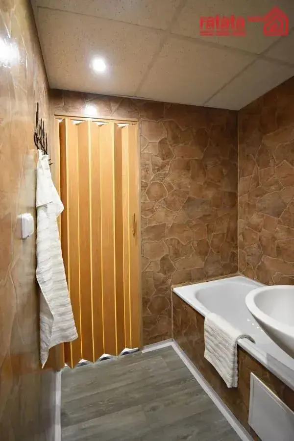 Je zde kuchyňská linka, plynový sporák, vana s umyvadlem a WC. Na podlahách je položeno lino a koberec. Byt je volný k nastěhování od 1.3.2026.