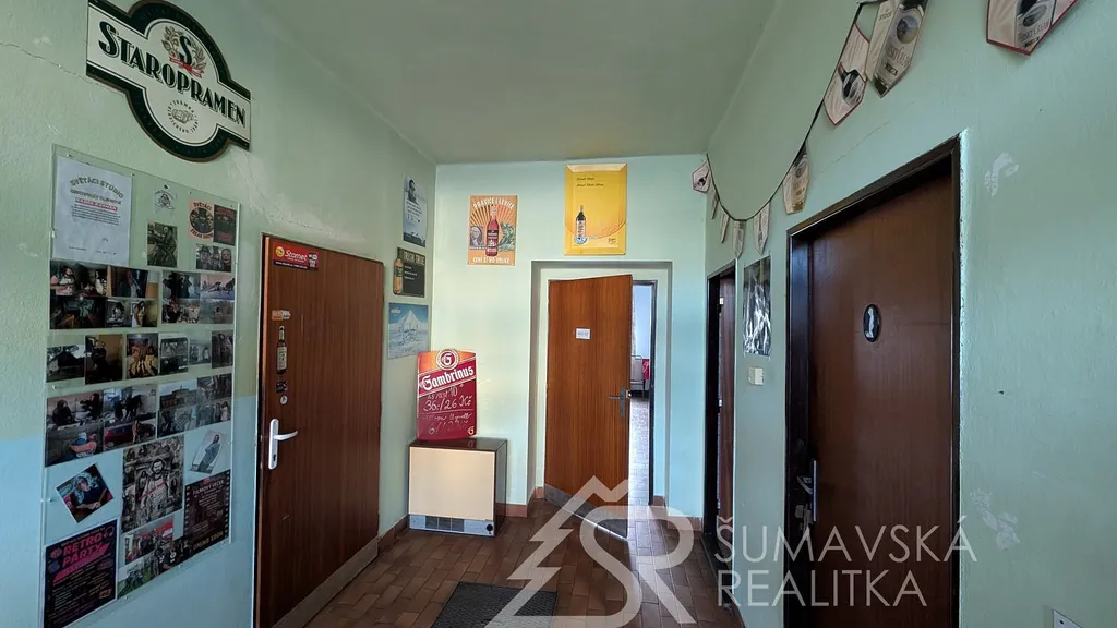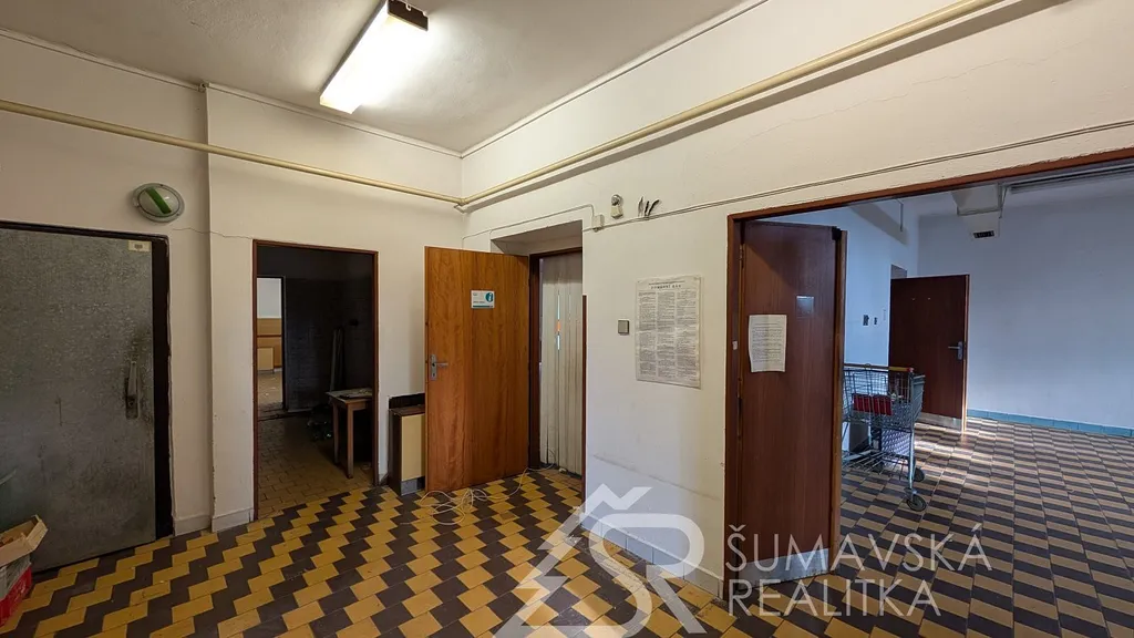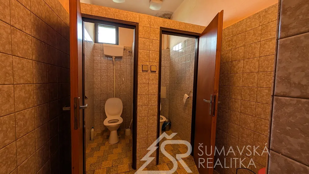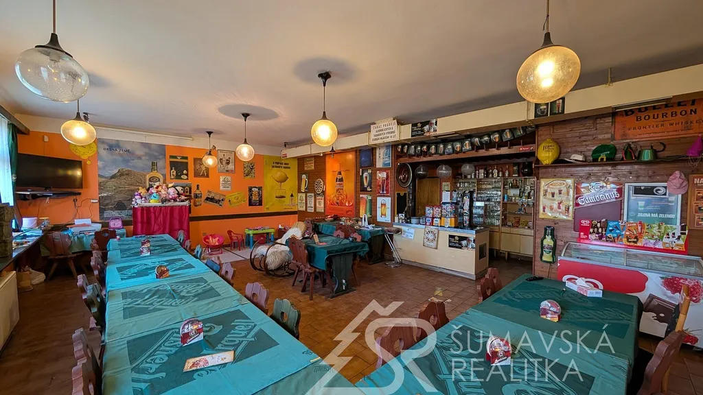 Popis nemovitosti: Jedná se o stavbu provedenou zděnou technologií, není podsklepená a má jedno nadzemní podlaží. Dům má sedlovou i pultovou střechu s betonovou krytinou. V přízemí je prodejna potravin o celkové podlahové ploše 250 m² se sklady, mrazákem, kanceláří a sociálním zařízením pro prodavače. Restaurace s výčepem, sousedním malým sálem, kuchyní, sklady, WC ženy a muži, kancelář vedoucího - vše o celkové podlahové ploše 244 m². Podlahová plocha obou budov je 494 m². Svislá nosná konstrukce je zděná o šířce 48 cm, stropy rovné, krov vazníkový sedlový, krytina tradiční betonová, okna dřevěná zdvojená, ocelové výkladce, dveře hladké a kovové. Obě budovy byly postaveny v roce 1990 a jejich údržba je na dobré úrovni.