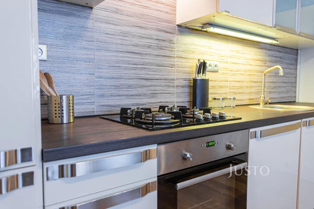 ● kuchyň s jídelním stolem a kuchyňskou linkou plně vybavenou spotřebiči (plynový sporák, trouba, lednice, mrazák, myčka),