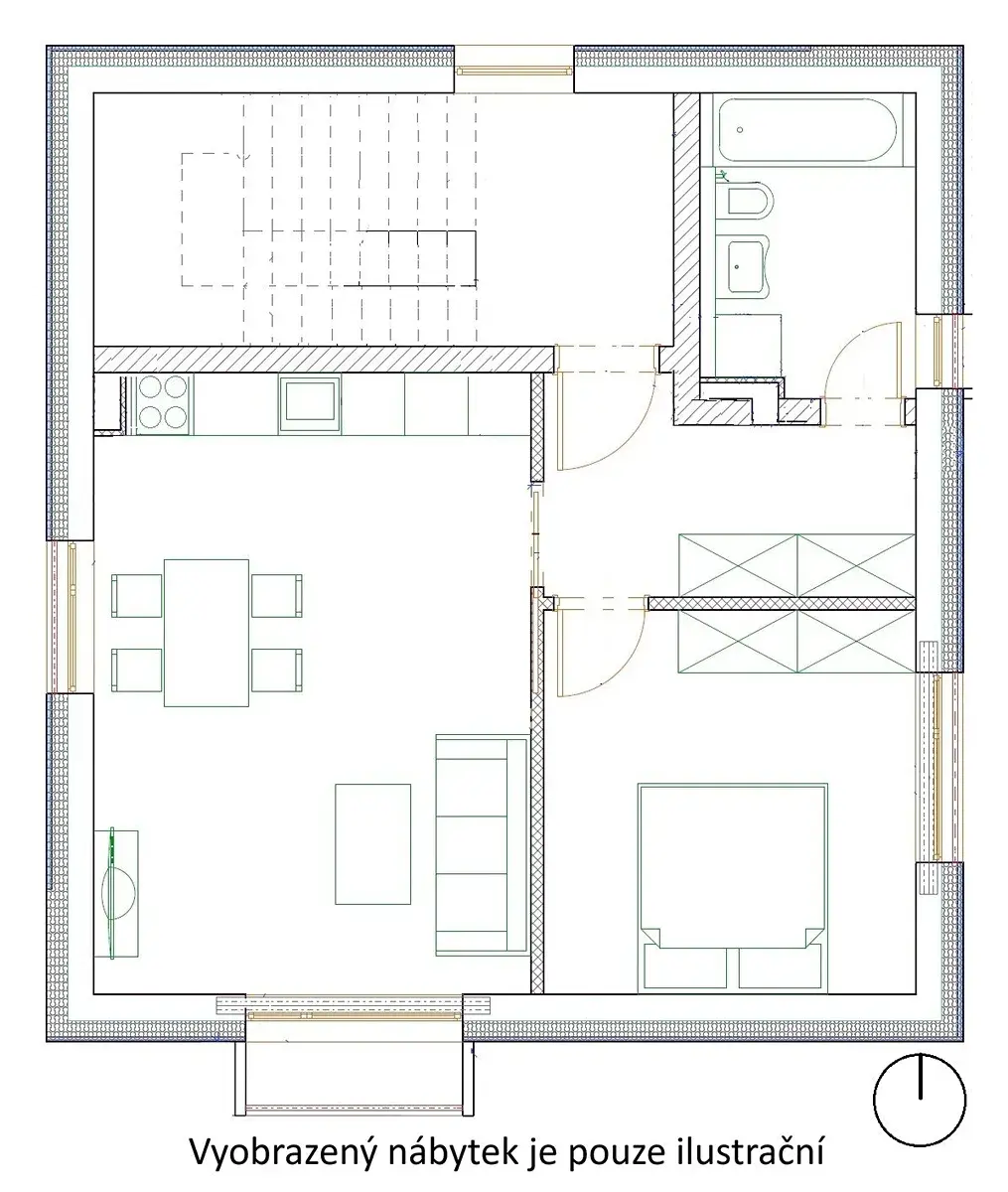 Ložnice je orientována na východní stranu, obývací pokoj na západ/jih a lodžie na jižní stranu s výhledem na Mlýnský rybník.