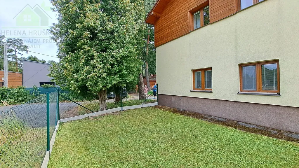 Součástí nájmu je vlastní oplocený pozemek - zahrada, terasa a venkovní parkovací stání, včetně velké společné sdílené zahrady s posezením, altánem a možností sportovního vyžití.