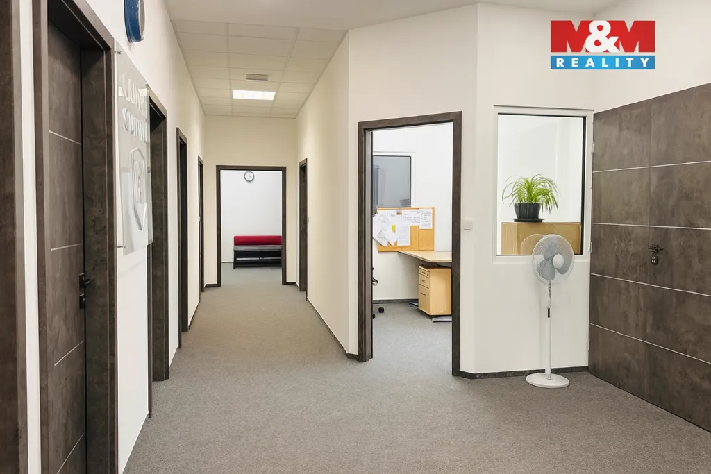 Nabízíme k prodeji moderní kancelářské prostory o celkové ploše 179 m² v přízemí bytového domu z roku 2016 v Klecanech u Prahy. Prostory prošly kompletní rekonstrukcí v roce 2022 a jsou ve výborném stavu. K dispozici je 6 samostatných kanceláří, open office pro 3 pracoviště, velká zasedací místnost až pro 18 osob, kuchyňka, dvě technické místnosti, pánské i dámské toalety a místnost s vlastním vchodem a koupelnou s WC. Prostory jsou vybavené nábytkem, na podlaze jsou zátěžové koberce. Vytápění zajišťuje centrální plynový kotel, objekt je napojen na veřejný vodovod, kanalizaci a elektřinu. K dispozici jsou tři vyhrazená parkovací stání přímo před kanceláří, navíc u domu se nachází velké parkoviště. Stanice metra je vzdálená cca 15 minut. Cena bez DPH. Kanceláře jsou připravené k okamžitému využití a představují ideální volbu pro firmu, která hledá moderní, klidné a dostupné zázemí v blízkosti Prahy. V případě Vašeho zájmu neváhejte kontaktovat makléře!