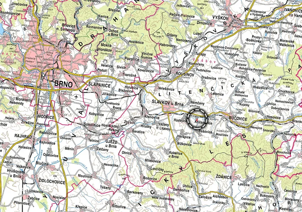 Pozemek je součástí rozsáhlého stavebního území. Umístění parcely je vidět na fotografiích. Obec Křižanovice leží mezi městy Slavkov u Brna a Bučovice. Je zde dobrá dopravní dostupnost a zároveň je zachován klidný ráz jihomoravské vsi. V obci je mateřská a základní škola.
