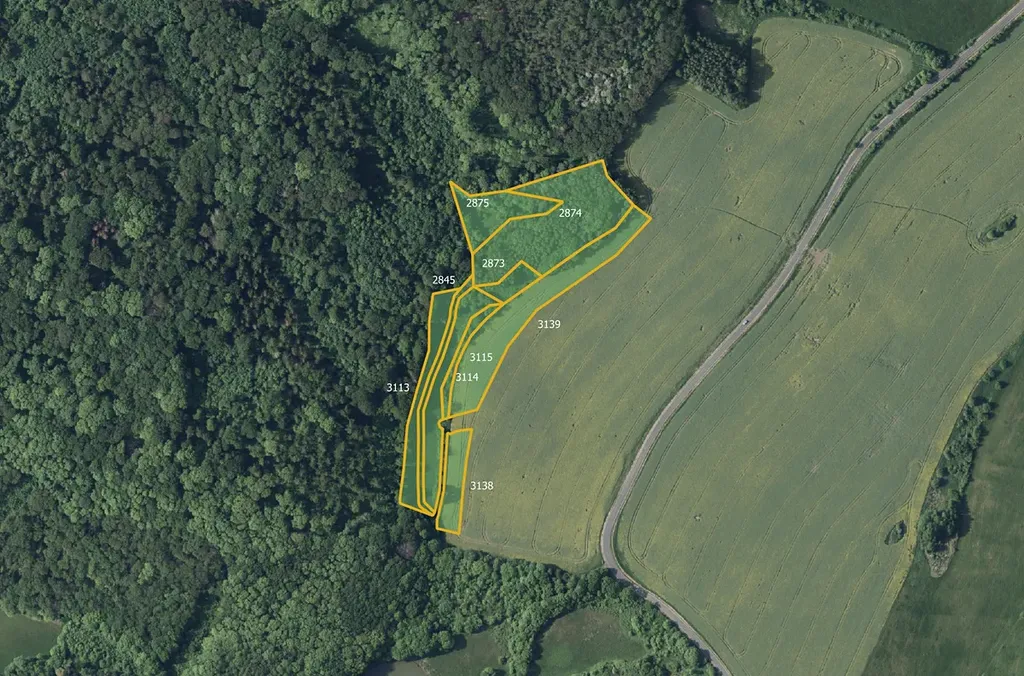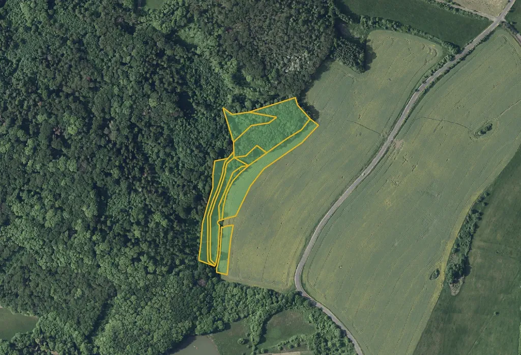 Součástí souboru je orná půda o výměře 6 719 m², která sousedí s lesním pozemkem (parcela č. 2874). Takové uspořádání zajišťuje přirozené oddělení pozemků a možnost efektivního využití.