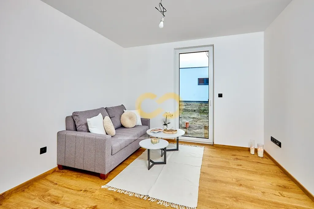 Novostavba je navržená s důrazem na pohodlí a nízké provozní náklady. Podlahové vytápění, tepelné čerpadlo a moderní stavební standard znamenají příjemné bydlení bez vysokých účtů za energie.