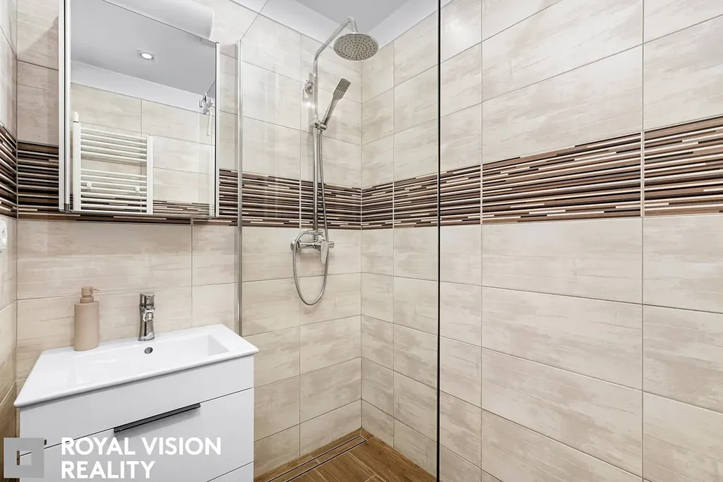 Jednotka prošla celkovou rekonstrukcí interiéru v roce 2017 a je ve velmi dobrém stavu. Kuchyň je kompletně vybavená včetně plynového sporáku a digestoře s odtahem do šachty. Koupelna nabízí prostorný sprchový kout, toaleta je samostatná. Ložnice je prostorná se sníženým parapetem. Pokoje v bytě jsou neprůchozí. Podlahy tvoří lino s původními parketami pod nimi. Okna jsou plastová s dvojsklem, nově byly instalovány předokenní žaluzie (12/2024). Prakticky řešen úložný prostor.