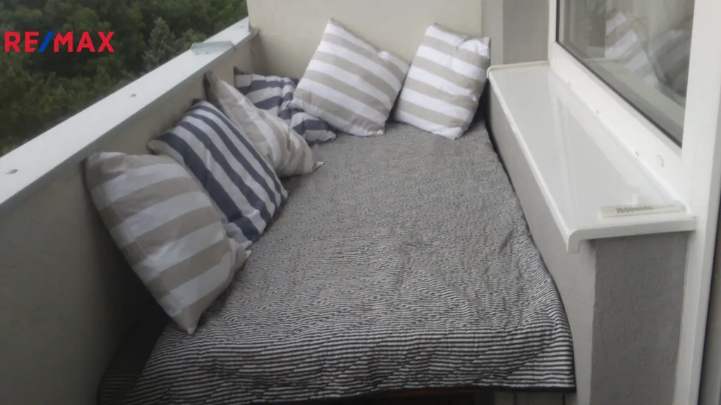 Velkou předností je prostorný balkon s orientací na jihozápad, který nabízí příjemné posezení s krásným výhledem. K bytu náleží sklepní kóje a garážové stání přímo v domě. Další garážové stání je možné si dlouhodobě pronajmout za 1 400 Kč měsíčně.