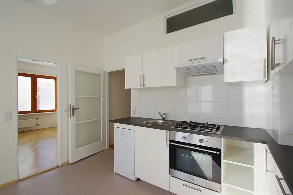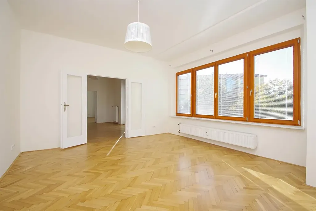Prostorný byt 3+1 (2 ložnice, 1 koupelna), o ploše 91m2, je situován v 1. patře dobře udržované budovy bez výtahu, v klidné rezidenční lokalitě Praha 10 Vršovice, ulice Volyňská.