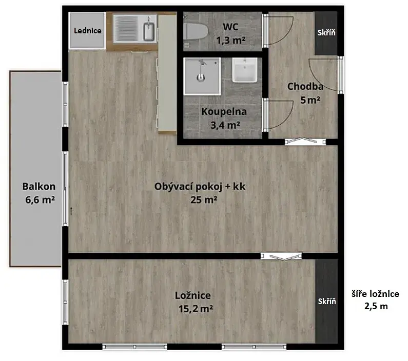 Pronájem prosvětleného bytu 2+kk o celkové výměře 56,5m2 s balkonem, nacházející se ve 4.patře zděného domu s výtahem, v lokalitě Jižní svahy - Podlesí II, Zlín.
