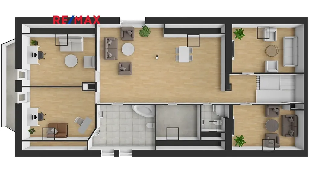 V 2.NP se nachází 4 prostorné pokoje, koupelna s wc a sprchovým koutem, pracovnou a velkou koupelnou s rohovou vanou, přípojkou na pračku, dvojumyvadlem, bidetem a toaletou. V otevřeném prostoru lze vybudovat kuchyňský kout, pro který jsou instalace připraveny.