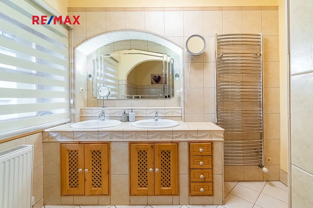 Pozemek 3163 m2 a užitná plocha 304 m2. Dostatek soukromí zajišťuje vzrostlá zahrada společně se živým plotem a vjezdová brána s elektrickým pohonem.