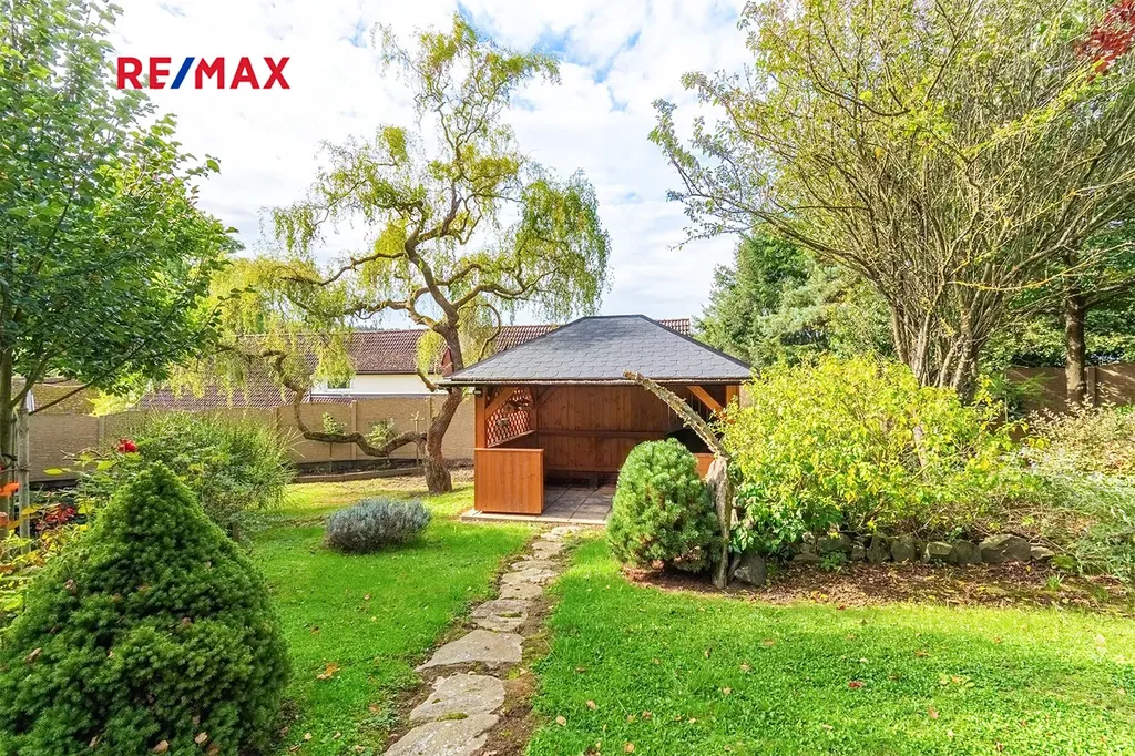 Nádherná, vzrostlá zahrada obklopující pozemek vás uchvátí a zajistí naprosté soukromí. Najdeme zde dřevěnou pergolu, kde je možno vybudovat venkovní kuchyň a nabízí tak místo ke grilování a posezení s přáteli.