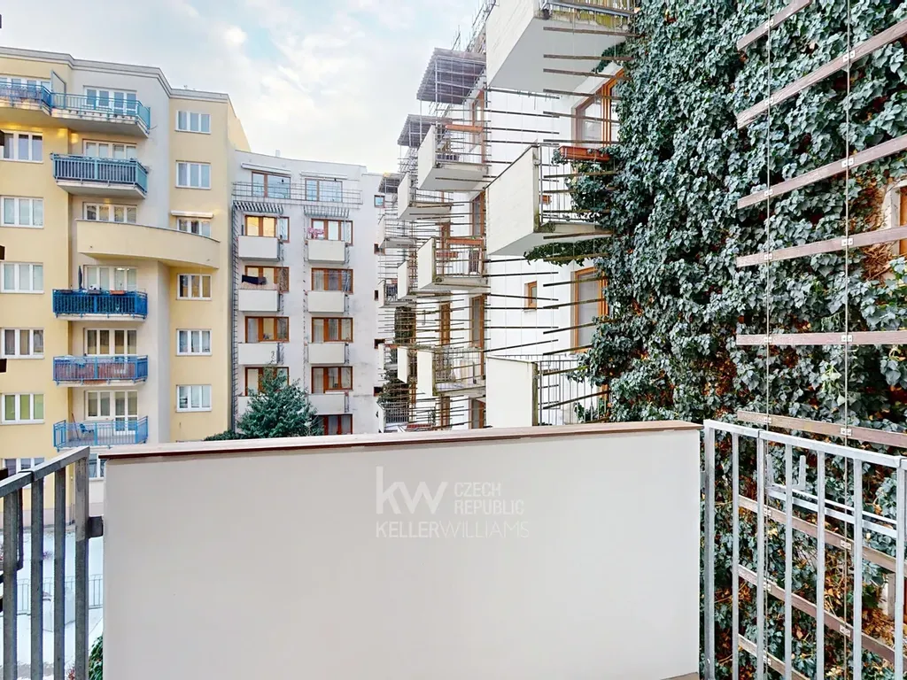 Součástí bytu je balkon o výměře cca 4 m² orientovaný do klidného vnitrobloku a dále zděná komora na stejném patře (cca 1,5 m²), která není započítána do podlahové plochy bytu.