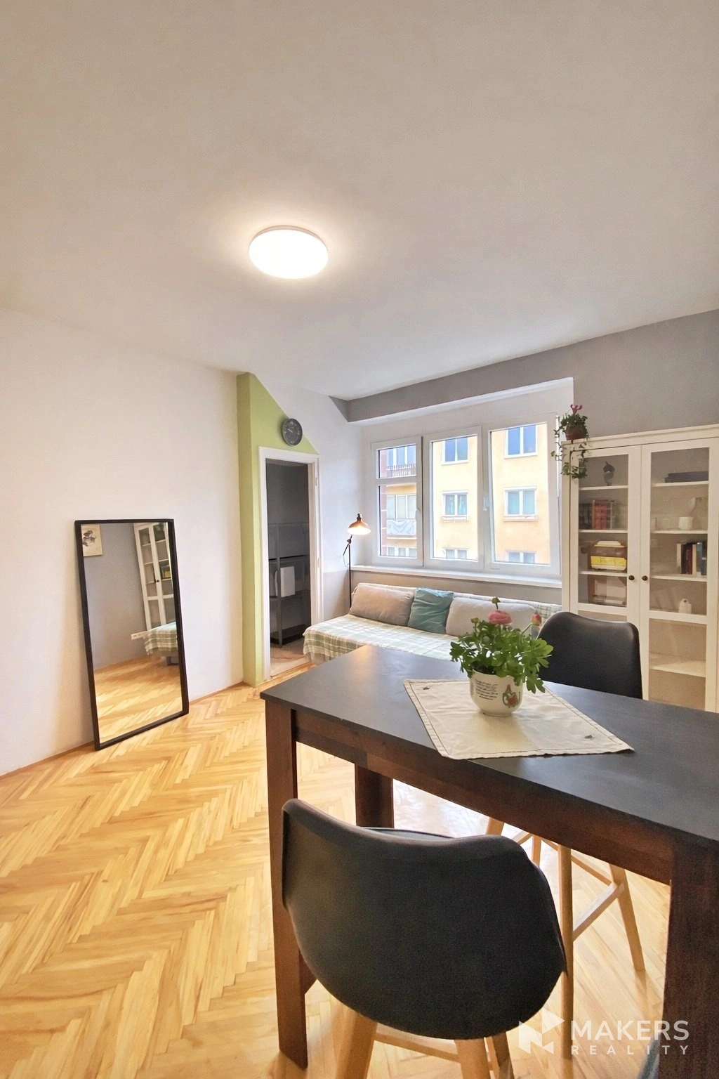 Nabízíme k prodeji útulný a plně vybavený byt o dispozici 1+kk s užitnou plochou 22 m² se sklepní kójí, který se nachází ve 2. nadzemním podlaží udržovaného cihlového domu v klidné části Prahy – Libeň.