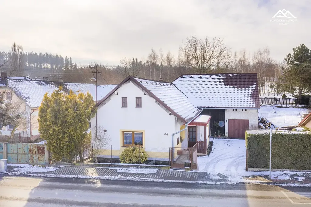 Dispozičně je dům řešen zádveřím, prostornou chodbou, ze které je po levé straně obývací pokoj s kuchyní a kuchyňskou linkou, dále je z chodby vstup do koupelny s vanou, umyvadlem a toaletou, do prava se z chodby dostaneme do ložnice, na kterou z levé strany navazuje pracovna, dále se z ložnice chodbou dostaneme do technické místnosti, kde je kotel na tuhá paliva a elektrokotel, na chodbu navazuje další ložnice s okny do zadní části zahrady. Chodbou se dostaneme dveřmi ještě do prostorné stodoly se schody na půdní prostory. Na půdě se nachází bojler, který ohřívá vodu.