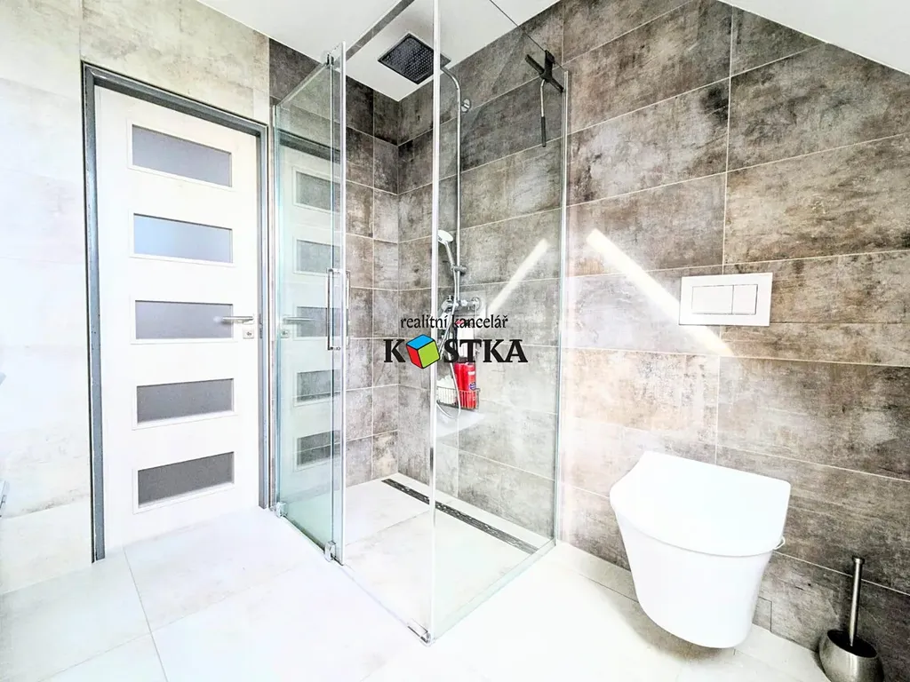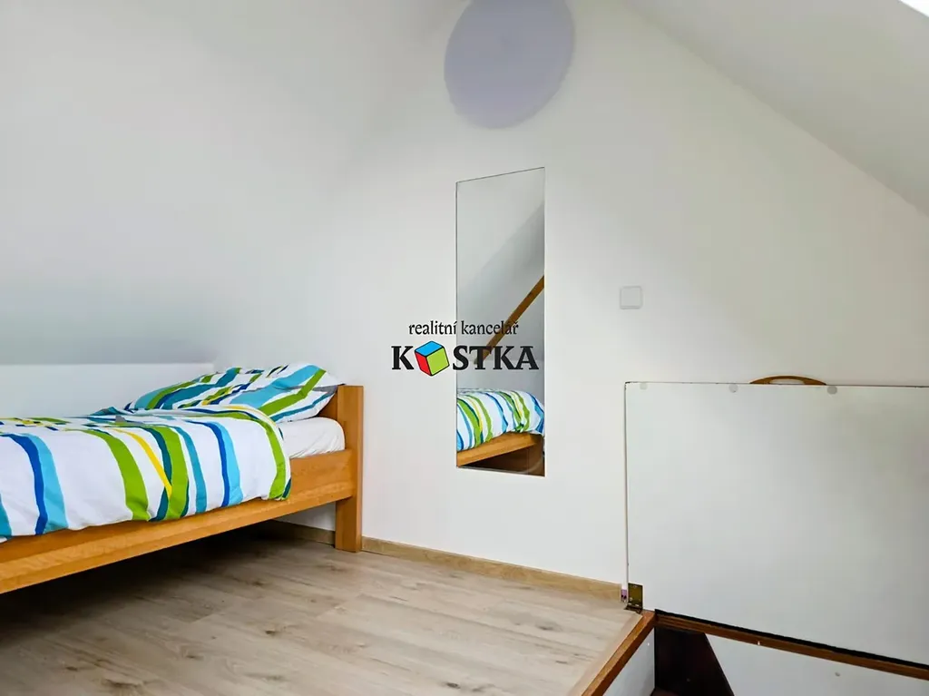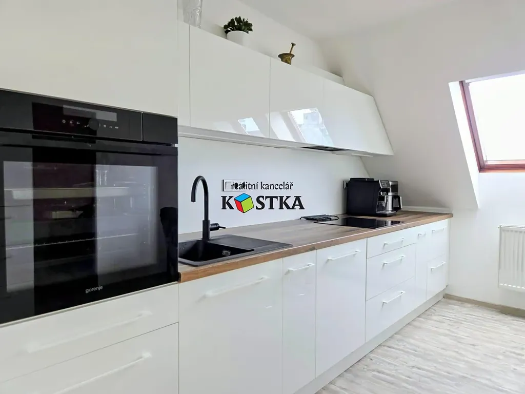 Byt je o dispozici 3+1, a je po kompletní rekonstrukci. Kuchyňská linka na míru je vybavena značkovými spotřebiči a u velkého jídelního stolu se navečeří i velká rodina. Slunný obývací pokoj s přiznanými trámy je tak velký, že sem v klidu umístíte i pracovní stůl, Ložnice rodičů je tak akorát, dětský pokoj je po schodech v podkroví - děti budou nadšené..... V koupelně najdete sprchový kout a toaletu. Šatna a dvě velké vestavěné skříně jsou již jen bonusem.