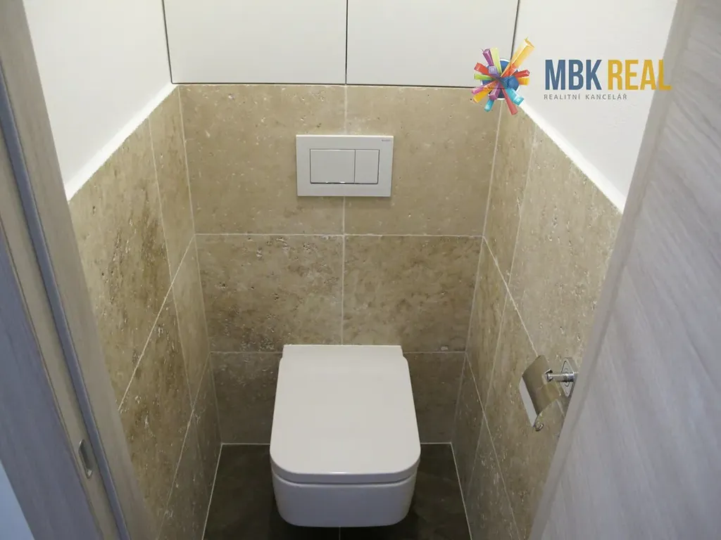 Dispozice bytu: samostatná kuchyň, kompletně vybavená vestavěnými spotřebiči (indukční deska, trouba, digestoř, mikrovlnná trouba, zabudovaná lednice s mrazákem, pračka - součástí kuchyňské linky), luxusní koupelna se sprchovým koutem, umyvadlo se skříňkou, WC samostatně.