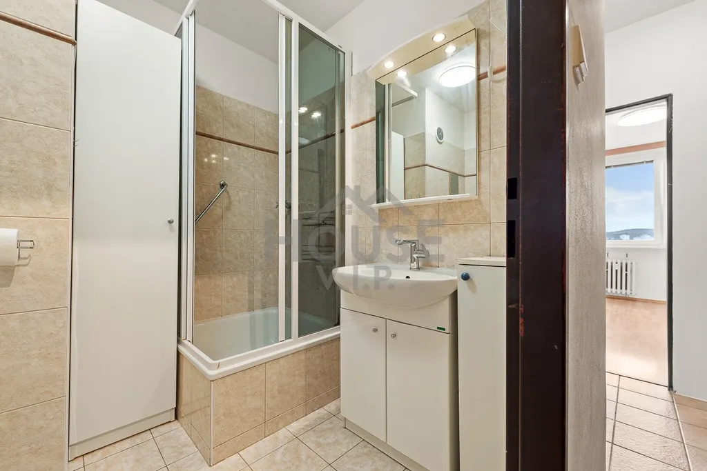 Nabízíme světlý družstevní byt 2+kk o velikosti 45 m² s komorou 4 m² v 9. patře kompletně revitalizovaného domu v žádané části Praha 4 – Modřany (ulice Krouzova).