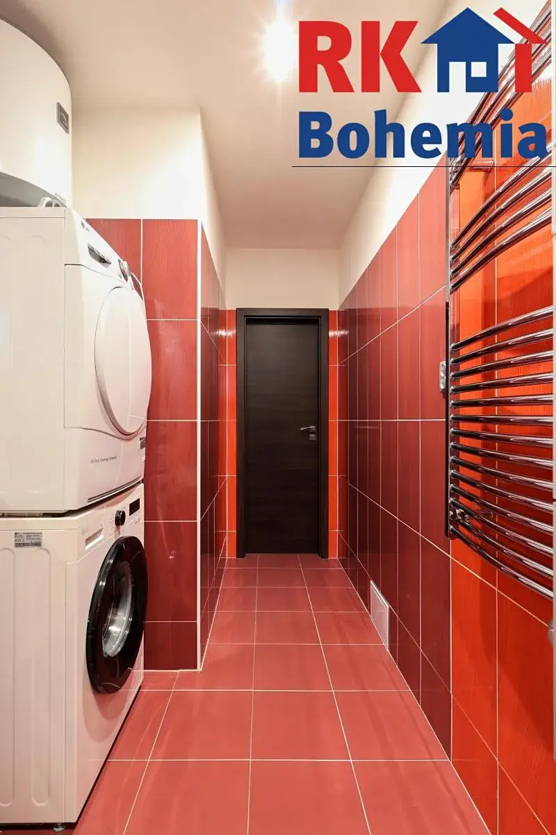Příslušenství: Koupelna s dostatkem místa (6,76 m), samostatné WC a prostorná vstupní chodba (14,05 m), kde jsou umístěny vestavné skříně, které nabízejí nadstandardní úložné kapacity.