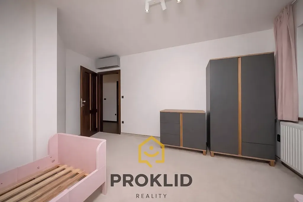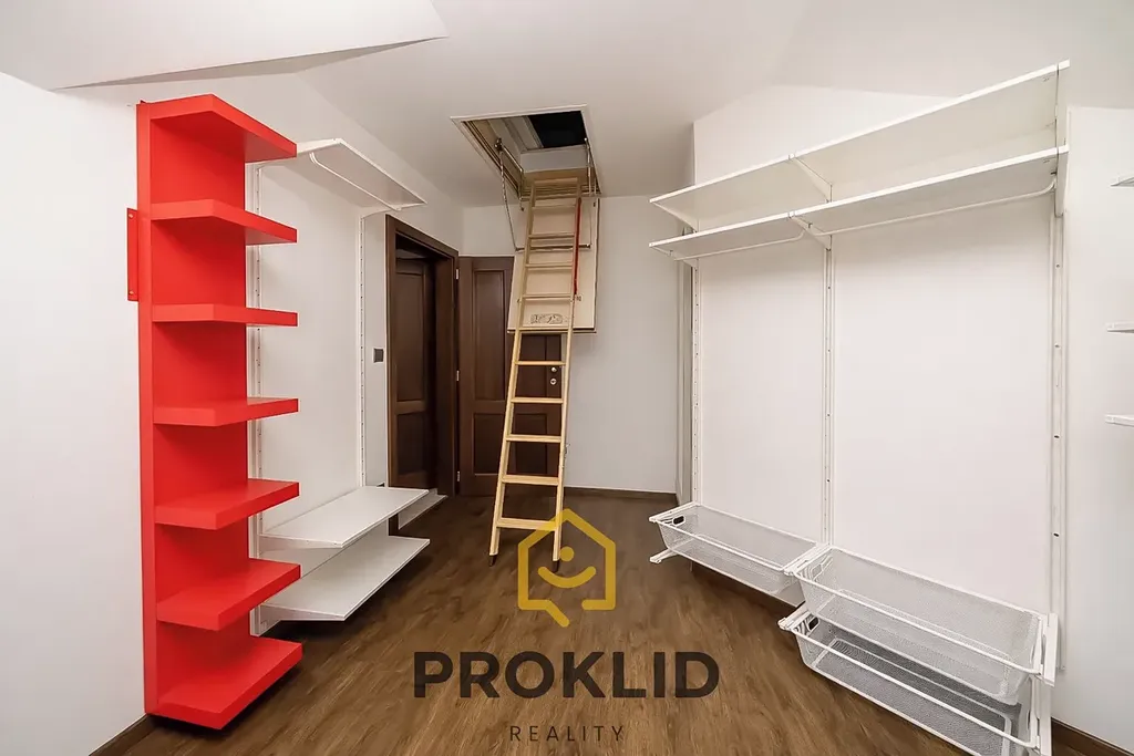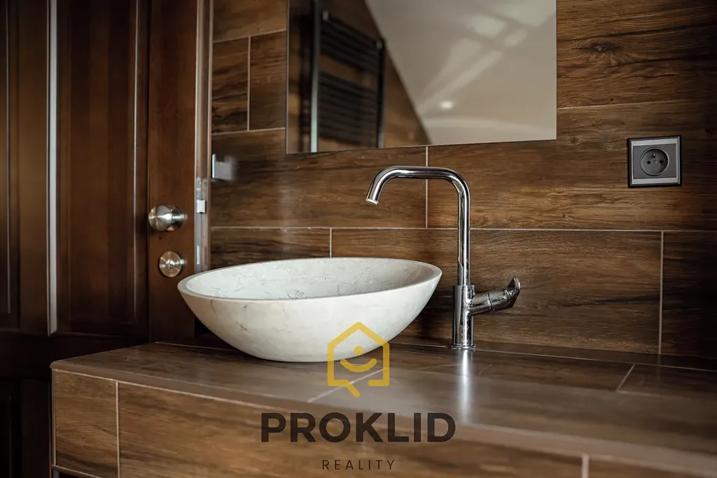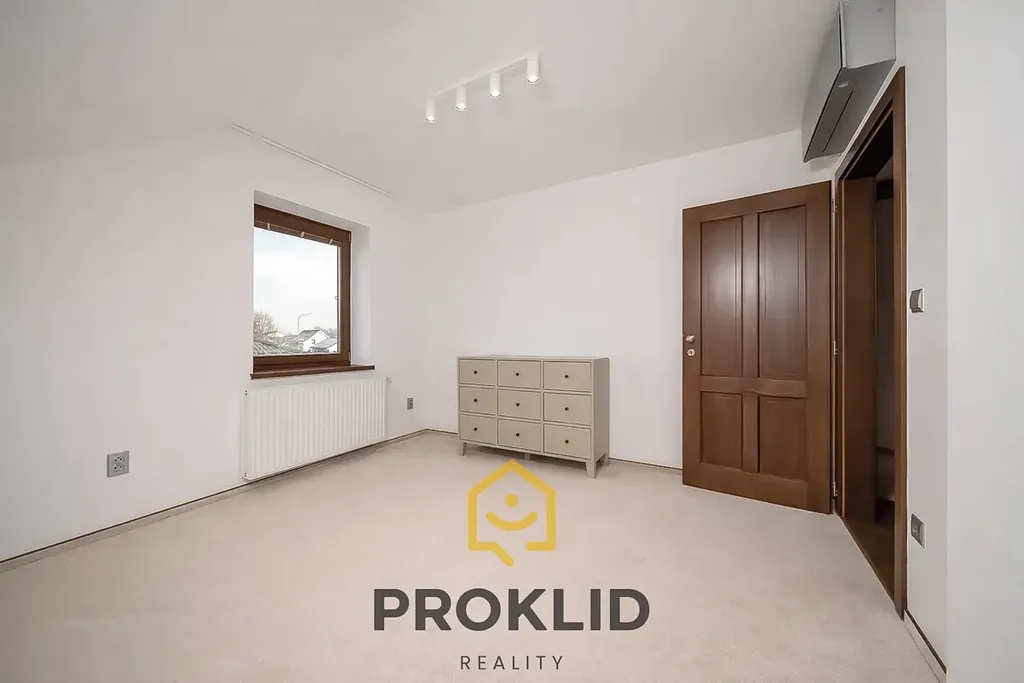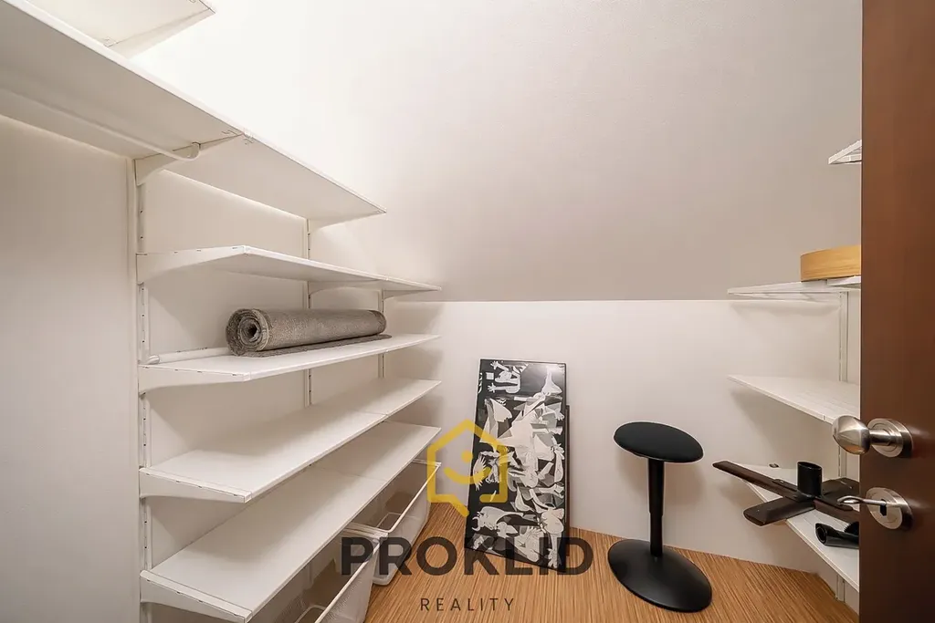 V prvním patře domu najdeme koupelnu s rohovou vanou, ložnici včetně TV a klimatizace, další pokoj napojený na ložnici, který může sloužit jako šatna, ale i jako pracovna, fitness zóna nebo dětský pokoj. Dále v prvním patře domu najdeme dva dětské klimatizované pokoje a samostatnou místnost, která může sloužit jako další úložiště nebo šatna.