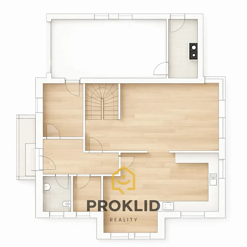 Celé vnitřní řešení rodinného domu odpovídá moderním trendům v bydlení s maximální praktičností. Dominantou je zde prostorná kuchyň na míru s jídelnou navázaná posuvnými dveřmi přímo na prostorný obývací pokoj. Přízemní podlaží rodinného domu dále doplňuje prádelna, toaleta, chodba, samostatný pokoj s širokým možným využitím a přímým vstupem do vyhřívané garáže a technické místnosti, ze které je výstup na terasu.