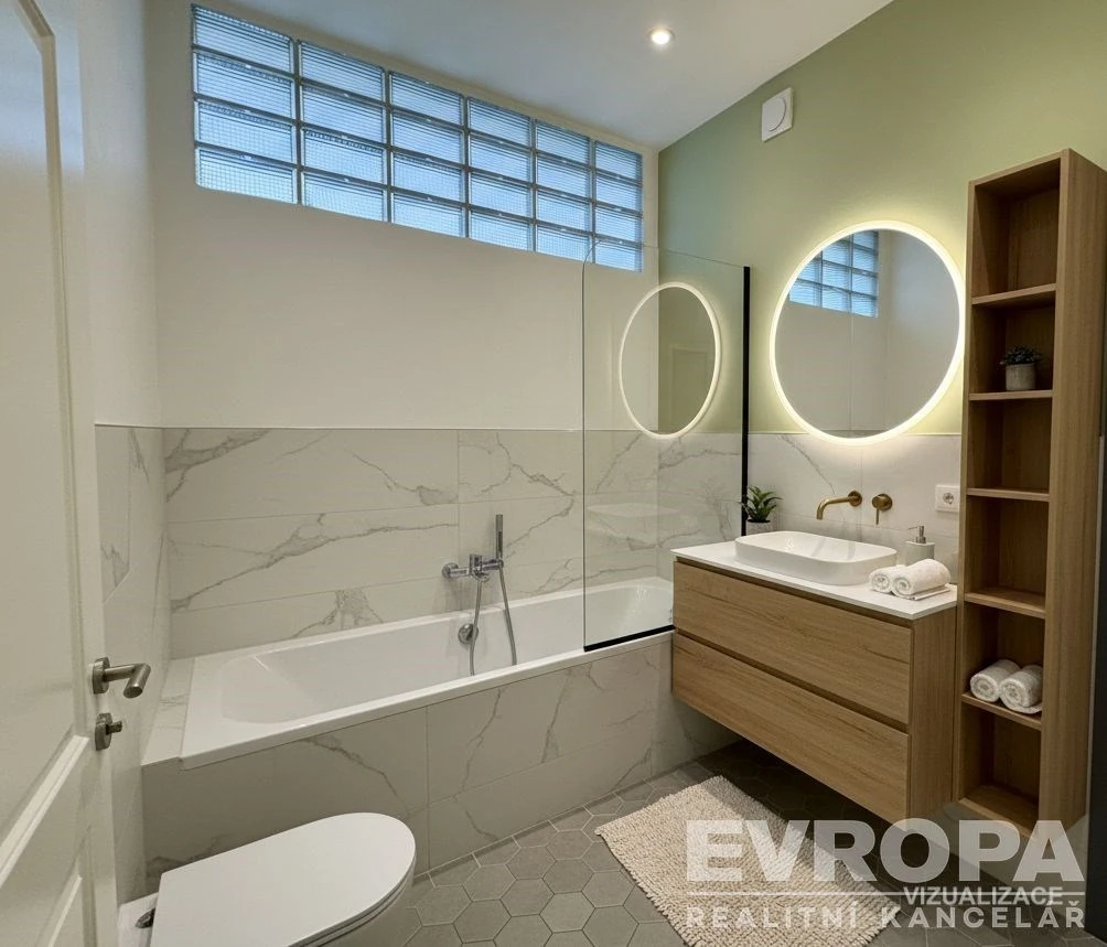 Byt je v původním, velmi zachovalém stavu a nabízí velký potenciál pro rekonstrukci dle vlastních představ. Díky své velikosti a dispozici poskytuje dostatek prostoru pro rodinné bydlení i možnost moderní přestavby. První čtyři fotky v galerii slouží jen jako vizualizace.