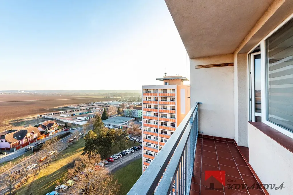 Jedná se o velmi světlý a vzdušný byt, který se nachází ve 12. patře panelového domu se dvěma výtahy. Dispozice bytu nabízí kuchyň propojenou s obývacím pokojem se vstupem na lodžii, dva samostatné pokoje (z jednoho je vstup na druhou lodžii), koupelnu s vanou a WC, komoru a vstupní chodbu.