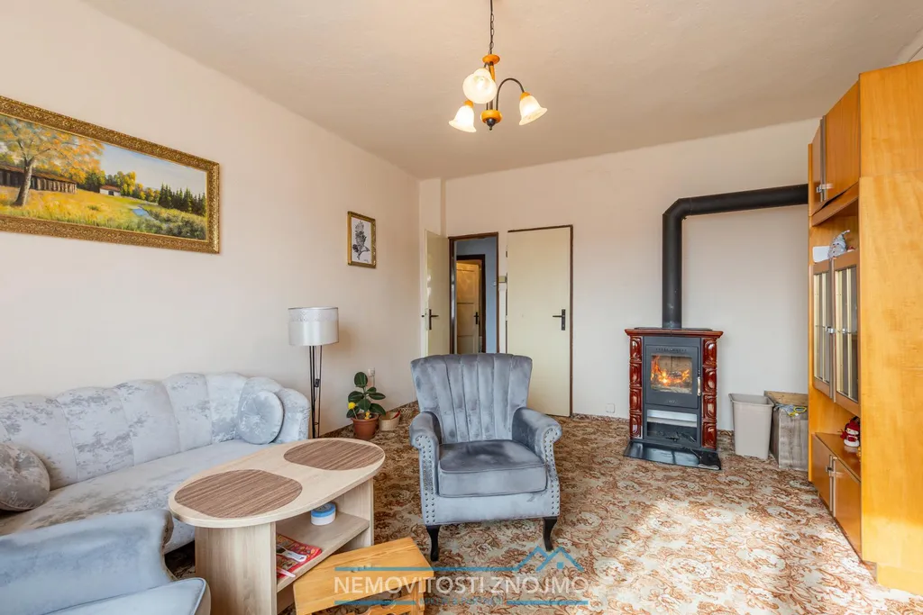 c.) obývací pokoj s krbovými kamny