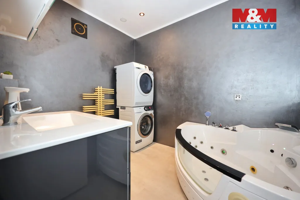 Tento nadstandardní byt, dokončený v roce 2022, zaujme moderním designem a kvalitním vybavením. Samozřejmostí jsou vinylové podlahy, plně vybavená kuchyň včetně kávovaru a drtiče odpadu, vestavěná skříň, hydromasážní vana, pračka, sušička i klimatizace. Vytápění a ohřev vody zajišťuje centrální kotel.