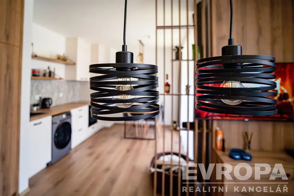 Apartmán o užitné ploše 46 m² se nachází ve 2. patře nového třípodlažního cihlového domu s výtahem a nabízí praktické řešení prostoru. Hlavní část tvoří obývací pokoj s moderně řešeným kuchyňským koutem s veškerým vybavením a přístupem na lodžii, která prodlužuje obytný prostor. Ložnice je vybavena manželskou postelí a praktickým patrem na spaní, které je ideální pro děti a efektivně využívá prostor bez nutnosti dalších úprav. Celý interiér doplňuje nábytek na míru od truhláře, který byl navržen s ohledem na reálné potřeby ubytování i úložné kapacity vestavěné skříně, pracovní a úložné plochy tak podporují maximální využití každého metru.