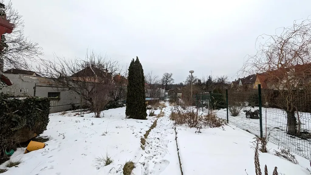 Zahrada je přístupná přímo z kuchyně a nabízí soukromí a prostor pro venkovní posezení či další úpravy dle představ nového vlastníka.