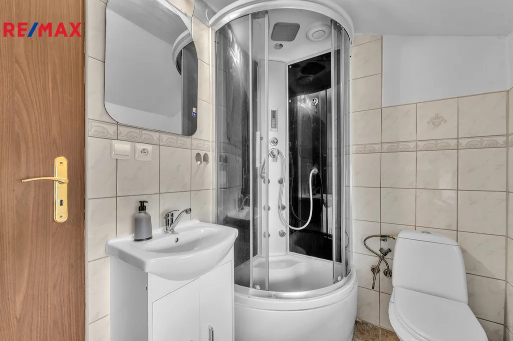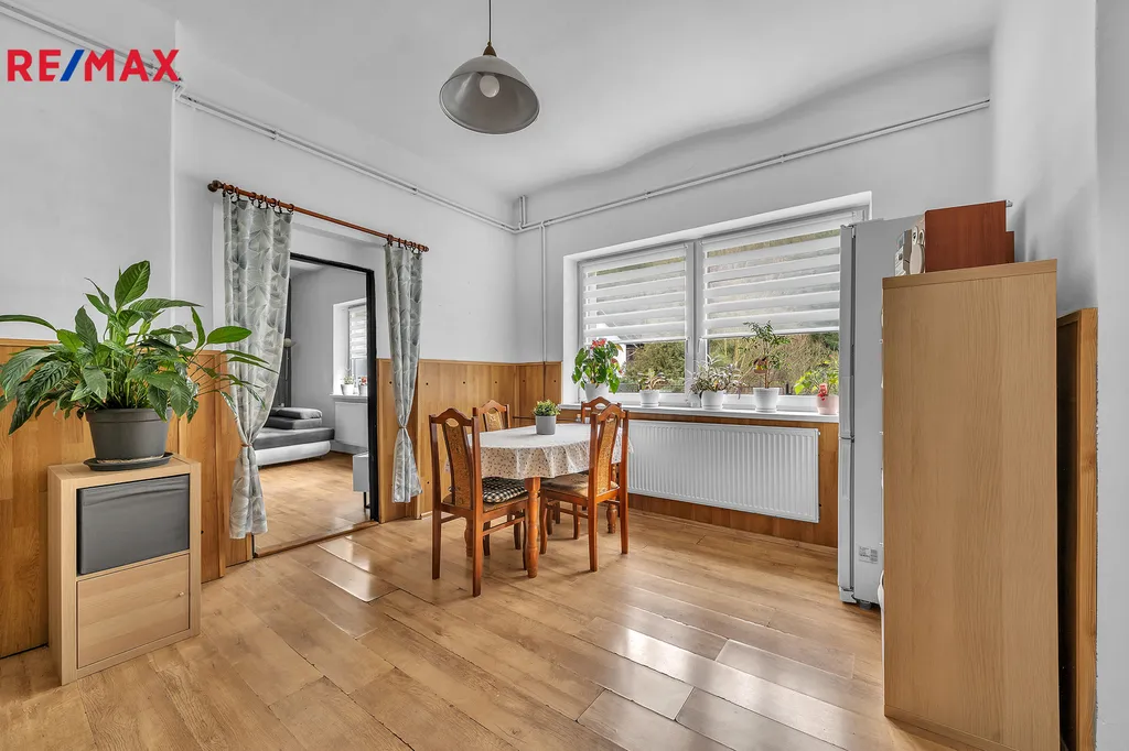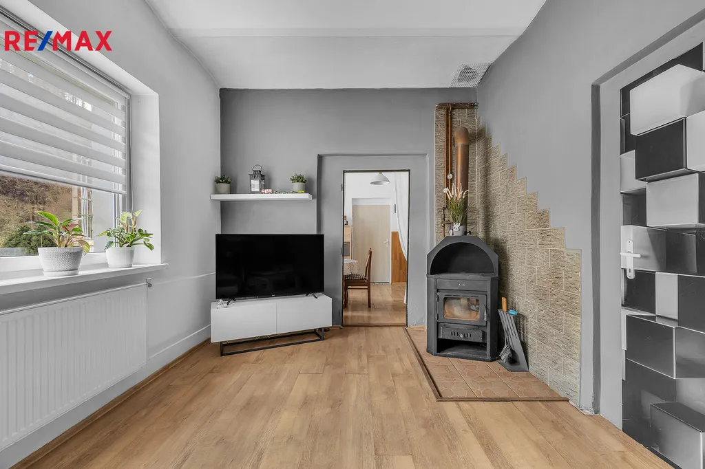 Přízemí: vstupní chodba - možnost vstoupit do technické místnosti s elektrickým kotlem na peletky nebo možno vystoupat do 1. patra nebo možno vstoupit do jídelny. Menší kuchyně se spotřebiči. Koupelna s vanou a toaletou. Obývací pokoj a ložnice. V 1. patře na Vás čekají 2 obytné místnosti, koupelna se sprchovým koutem a toaletou, podkrovní místnosti s charakterem úložných prostor.