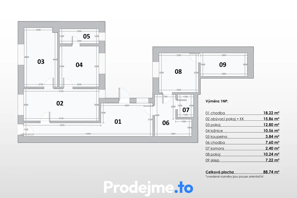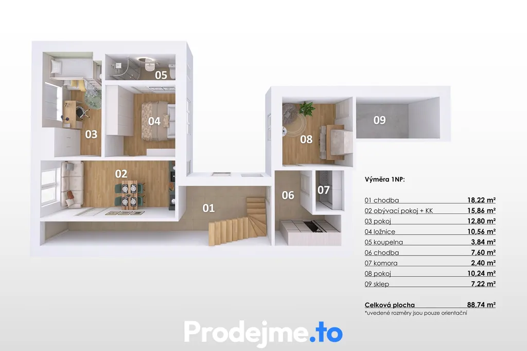 průjezdem. Velikostí odpovídá dispozičnímu řešení 1+1.