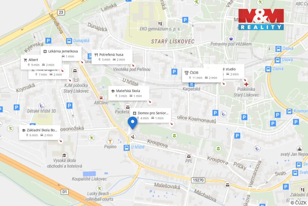 Výborná lokalita s dobrou dostupností a kompletní občanskou vybaveností. Ideální volba pro rodinné bydlení.