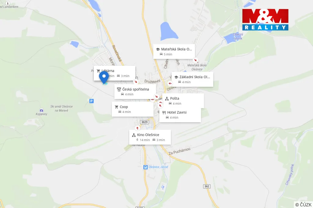 Město Olešnice disponuje kompletní občanskou vybaveností včetně škol, zdravotního střediska, lékárny, obchodů, restaurací, sportovišť i dětských hřišť. Lokalita nabízí klid, přírodu a příjemné bydlení s dobrou dostupností služeb.