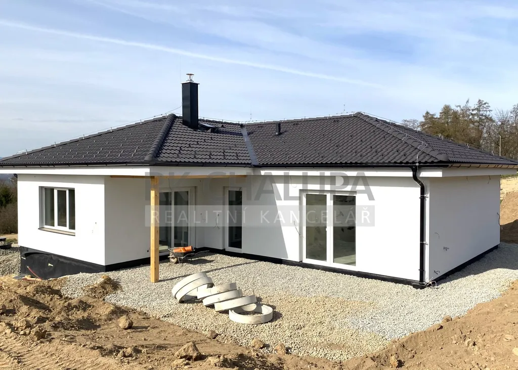 Nabízíme k prodeji novostavbu zděného nízkoenergetického rodinného domu, velikosti 4+1, na západním okraji obce Hosín, u Českých Budějovic, nyní realizace dokončení, včetně terénních a přístupových úprav, chodníku a terasy. Zastavěná plocha je 114 m2. Celkový pozemek o výměře 754 m2, Vnitřní dispozice domu zahrnuje hlavní obývací místnost s jídelnou, výstup na jihovýchodní terasu s krásným výhledem na Kleť a na hosínský kostel: Dále krbový s přívodem vzduchu. Kuchyně je samostatná s výstupem na terasu. Dva neprůchozí dětské pokoje. Ložnice prostorná s výklenkem na vestavnou skříň. Na chodbě výstup na půdu k úložnému prostoru, pochozí stav. Samostatné WC s umyvadlem. Koupelna bude dokončena, nyní lze ještě provádět individuální úpravy. V technické místnosti se šatnou i umístění plynového kondenzačního kotle se zásobníkem na teplou vodu. Ohřev vody s pomocí fotovoltaiky. Vytápění celopodlahové. Okna jsou v provedení "trojsklo". Objekt bude vybaven venkovními žaluziemi s dálkovým ovládáním nebo přes aplikaci. Kanalizace obecní. Vnitřní provedení, tj. sanita, obklady, dlažba, podl. krytiny, parapety, obložky, bude dokončeno. Zastávka příměstské dopravy na návsi, ČD v dosahu, nájezd na dálnici po 3 km. Autem 10 min. do centra města. Videoprohlídku zhlédnete na našich webových stránkách.
