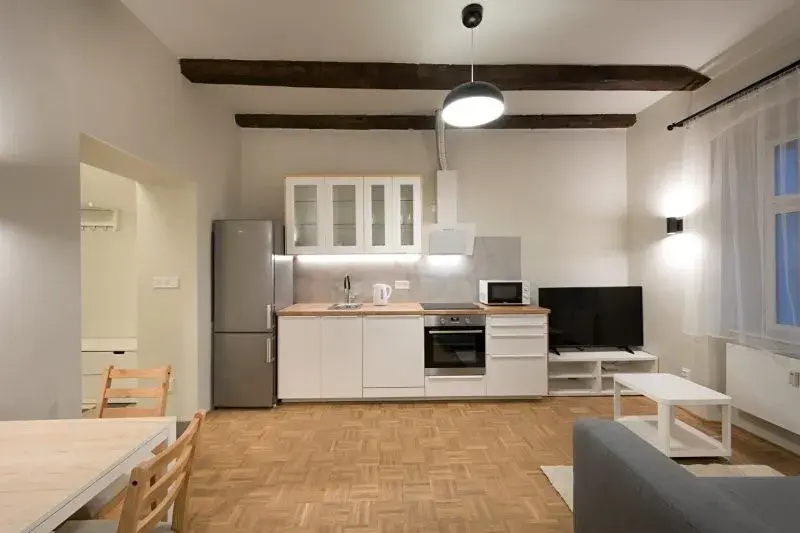 1358 Pronájem kompletně zrekonstruovaného zděného bytu 2+kk v Jihlavě, ul. Havířská. Byt o výměře 40 m2 se nachází ve 3.NP kompletně zrekonstruovaného historického domu na hradbách města. Byt je plně zařízen. (videotelefon, systém generálního klíče, pračka se sušičkou, myčka, internet atd.). K domu přináleží dvorek orientovaný k jihu s možností posezení a relaxace. Volný od 1. 4. 2026.