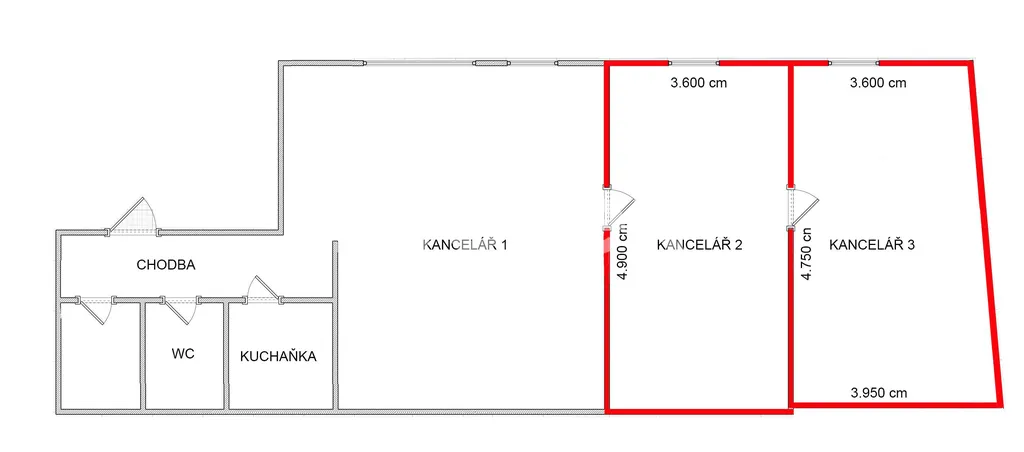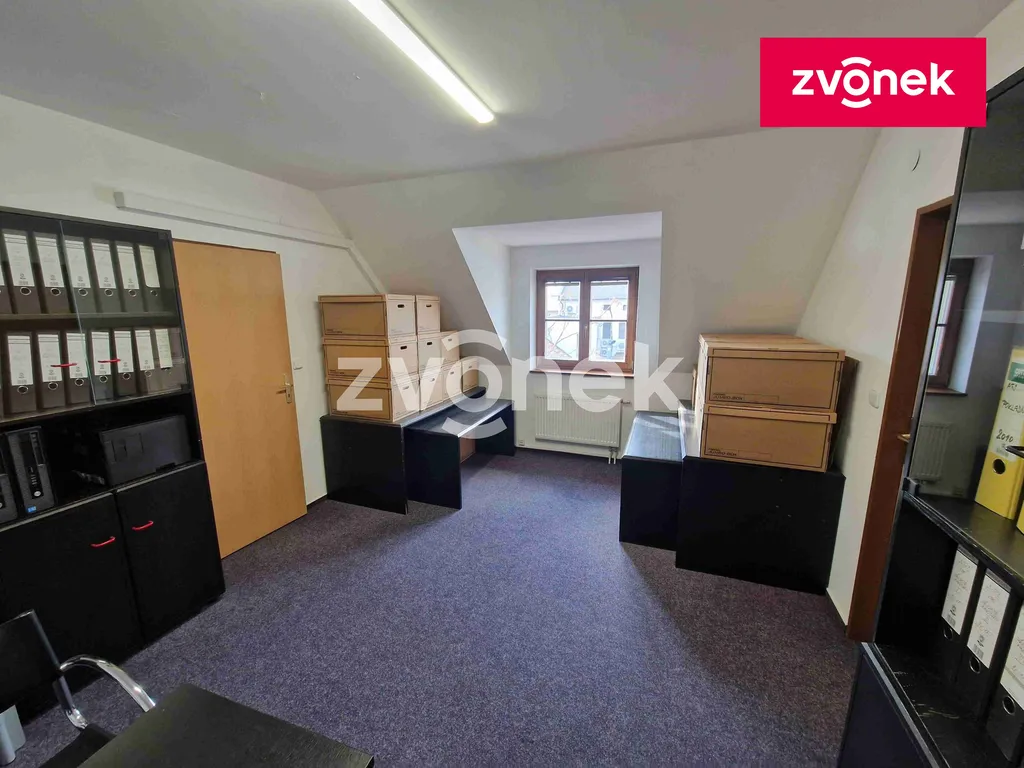 Plocha kanceláří činí 16 m2 a 18 m2. Obě kanceláře jsou umístěny v podkroví dvou podlažního kancelářského domu. Společné WC a kuchyňka jsou umístěny ve stejném patře a jsou určeny k využití pro obě kanceláře a třetí průchozí kancelář. Jedna z kanceláří je klimatizována. Kanceláře jsou propojeny dveřmi. Je možno si pronajmou každou z kanceláří zvlášť, tedy odděleně jednotlivé kanceláře. Kanceláře se nachází v bezprostřední blízkosti hlavního náměstí TGM v centru města. Celková měsíční platba za každou z kanceláří činí 3.000,- Kč a je složen 2.000,- nájem a 1.000,- Kč zálohy na energie. Prostory jsou volné ihned.
