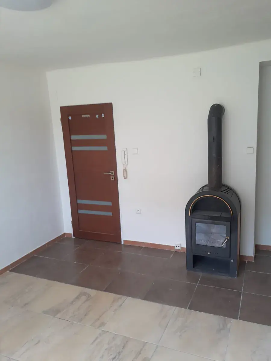 Byt je vytápěn krbovými kamny na dřevo a v koupelně se nachází podlahové elektrické topení. Ohřev vody elektrickým bojlerem.