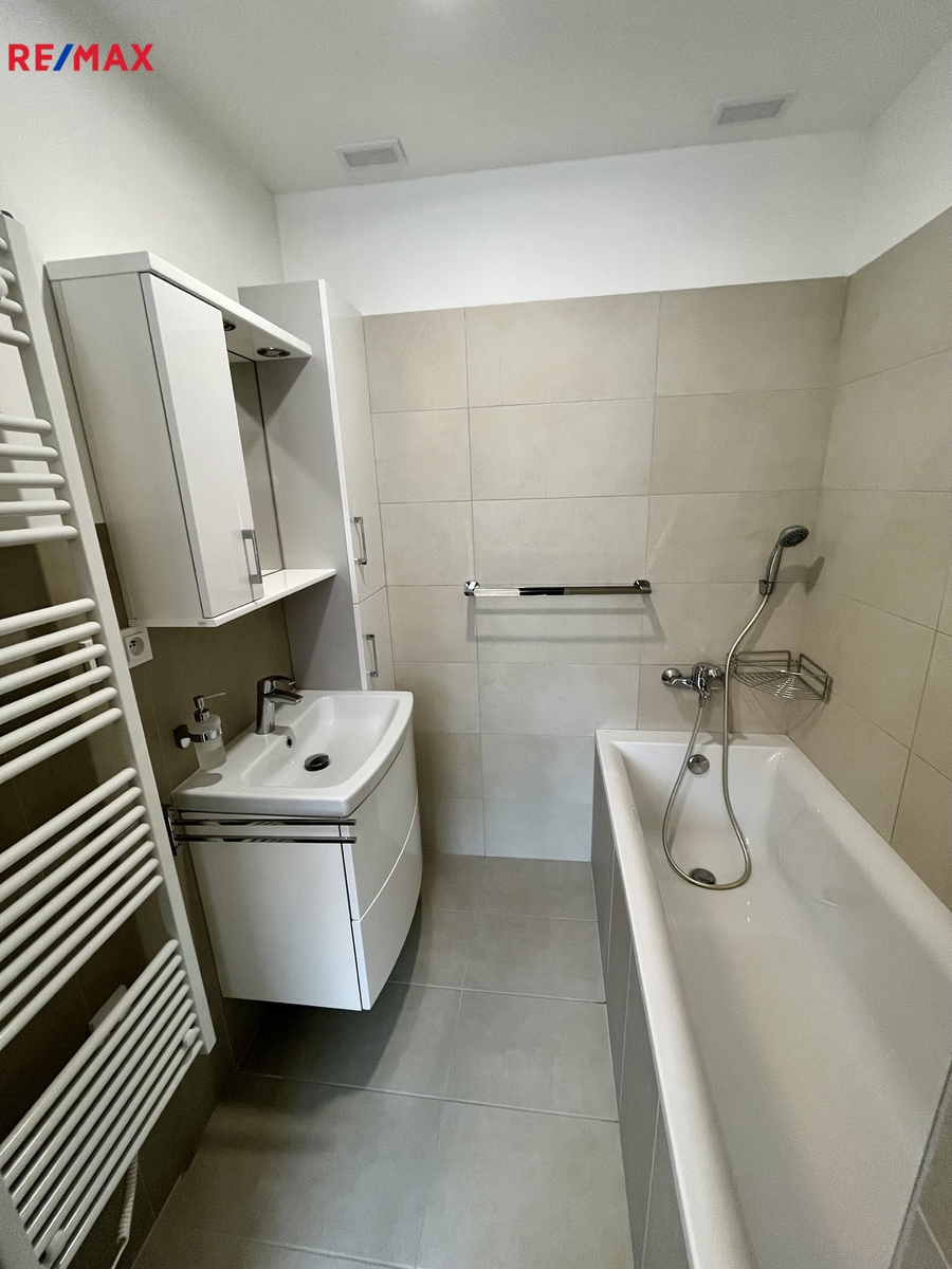 Technický stav a vybavení: nová elektroinstalace v celém bytě, moderní kuchyňská linka na míru včetně vestavěných spotřebičů (lednice, myčka, pračka, sušička), vestavěné skříně a dostatek úložných prostor, zděná koupelna a samostatné wc. Nové osvětlení a žaluzie den/noc (byt se prodává včetně vybavení).