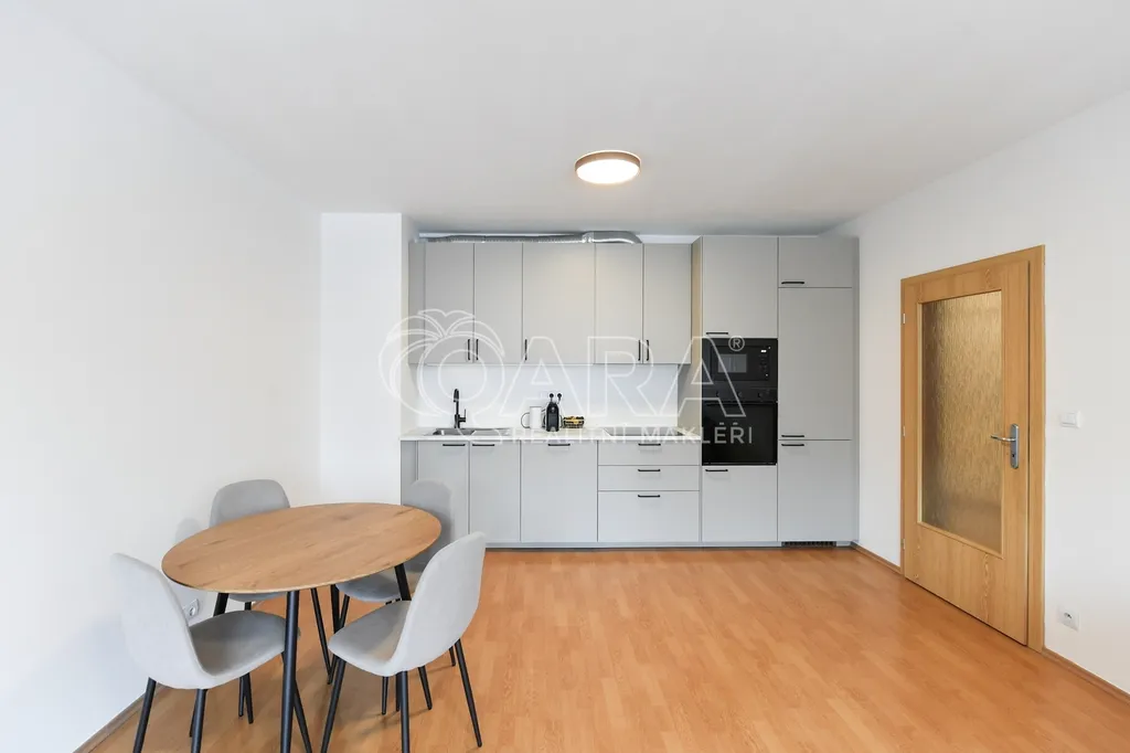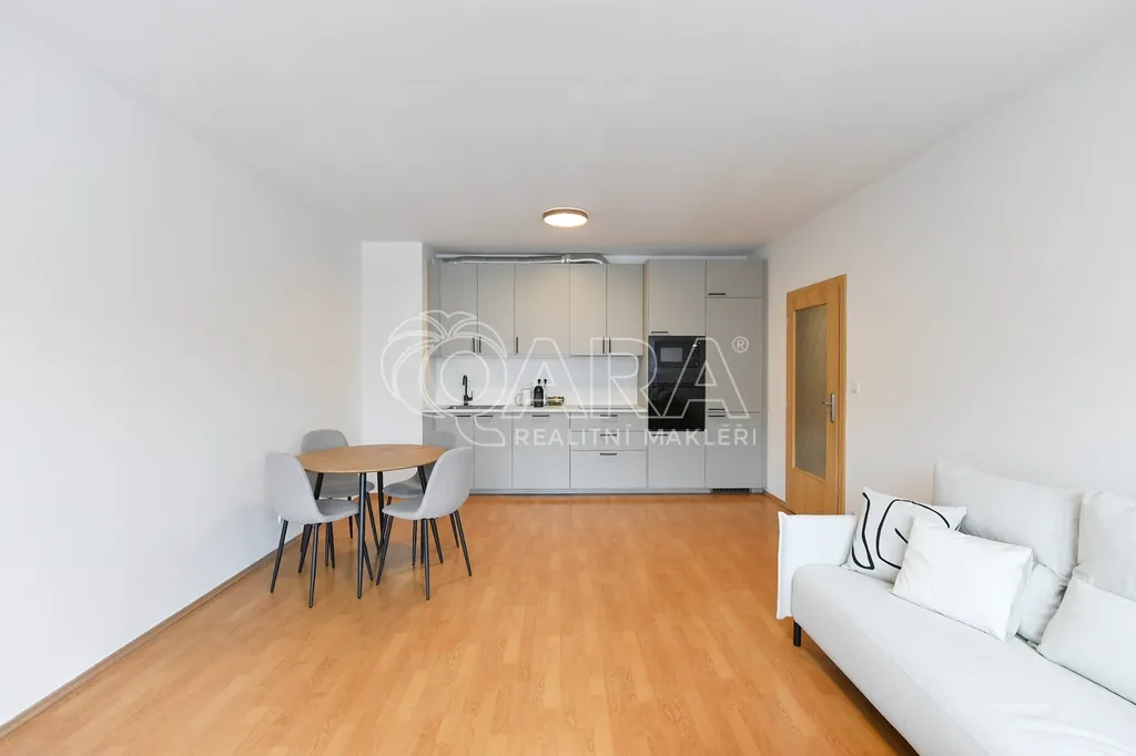 Exkluzivní nabídka pronájmu bytu o dispozici 2+kk s lodžií, ul Panuškova, Praha 4 - Krč. Byt je umístěn ve 4.NP bytového domu z roku 2009.