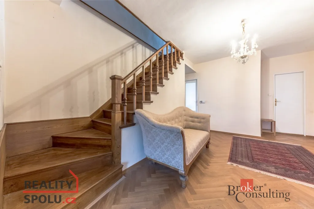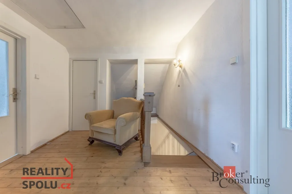 Exkluzivně nabízíme k prodeji zděný dům v klidné a žádané lokalitě v Točné na Praze 4. Prostorný třípodlažní dům s dispozicí 5+1 byl postavený v 80. letech na mírně svažitém pozemku o velikosti 609 m2 s ideální jižní orientací. V přízemí se nachází zádveří, hala, prostorný obývací pokoj s velkou terasou, kuchyně, dva další pokoje, koupelna a samostatné WC. V hale a v pokojích jsou kvalitní a krásně zachovalé parketové podlahy. V podkoví se nacházejí dvě ložnice, koupelna a WC. Suterén se rozkládá na celém půdorysu domu a najdete zde garáž s navazujícím skleníkem, spíž, kotelnu, prádelnu/sušárnu a dvě prostorné místnosti využívané nyní jako sklad. Dům je připojen na obecní vodovod a je vytápěn ústředním topením s elektrickým kotlem. Odpadní vody jsou svedeny do jímky na pozemku. Dům svými standardy odpovídá době, ve které byl postaven a vyžaduje tak rekonstrukci. Zároveň ale dává potenicál vybudovat si moderní bydlení na krásném místě Prahy ve velmi klidné a usazené lokalitě uprostřed krásné přírody. Jen po pár desítkách metrů vstupíte do krásné Točenské rokle a krátkou procházkou dojdete na keltské oppidum Závist nebo do Břežanského údolí. Po cyklostezce se z Točné dostanete snadno na výlety dolů k Vltavě a Berounce nebo na druhou stranu do nádherného Posázaví. Tato nemovitost nabízí i se započtením nákladů na budoucí rekonstrukci potenciál naprosto špičkového bydlení v krásné části Prahy za rozumnou cenu.