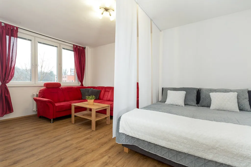 Na ulici Plzeňská nabízíme k pronájmu zrekonstruovaný, plně vybavený byt 1+1, situovaný ve 2. patře revitalizovaného panelového domu.