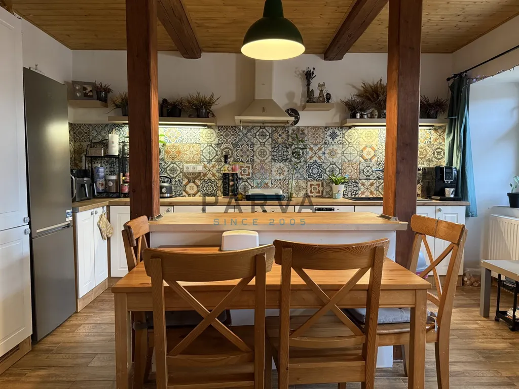 Prodám krásný rodinný dům, statek ,v malebné obci Lhota pod Radčem. Dům je smíšený - kámen, cihly a prošel náročnou rekonstrukcí. Bytová jednotka je o dispozici 4+1 o rozloze dle LV 178m2 + podkroví , zastavěná plocha s domem , dvorem, kotelnou a dílnou dle LV 483m2. Dům je částečně podsklepený s klenbami. V přízemí se nachází chodba a dřevěné schody vedoucí do podkroví . V přízemí po pravé straně je kuchyň s novou moderní kuchyňskou linkou do tvaru L , vestavěné spotřebiče - elektrická deska , trouba, granitový dřez , digestoř. Kuchyňská linka je oddělena barem od obývacího pokoje. Po levé straně je ložnice která je propojena se šatnou. Sociální zařízení je moderní a též vkusný , vybavení - vana , sprchový kout , dvě umyvadla , pisoár , WC , prostor na pračku a sušičku a žebříkové topení.