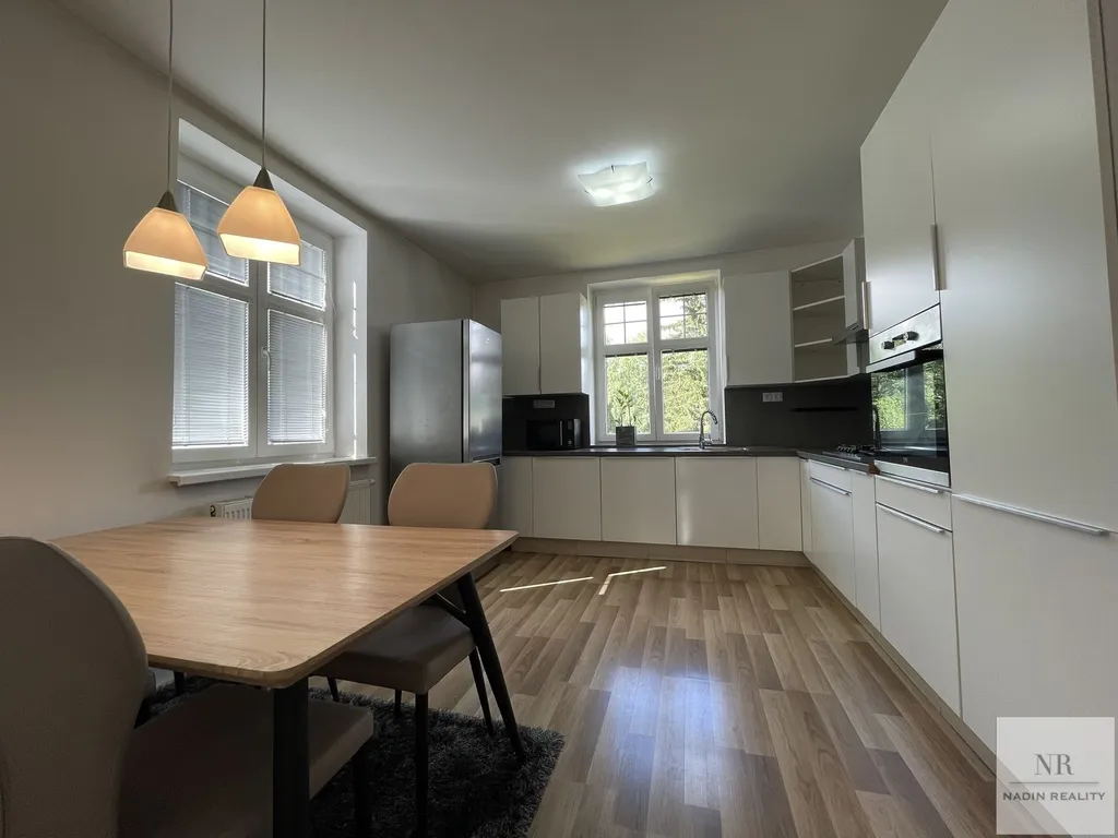 Součástí prodeje je kuchyňská linka včetně zabudovaných spotřebičů. Vytápění bytu a ohřev vody je řešen plynovým kotlem, okna jsou plastová. Na chodbě domu jsou nově vybudovaná krbová kamna. Dům je udržovaný, celkem v objektu je pouze 6 bytových jednotek. Před domem se nachází upravená předzahrádka a možnost parkování přímo před domem.
